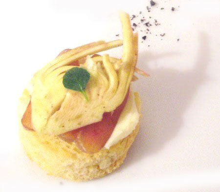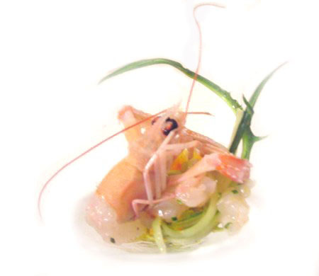L’intreccio di gioco e ferinità della caccia si manifesta già nell’amuse gorge, dove una coscetta di colombaccio e un totano tentacolare bramano, da una nuvola di patate, la torre di morbida burrosità sormontata da bottarga e carciofo crudo e rinascono nelle onde mediterranee del vino, perché nel vino è la verità, anche quella dei sapori.