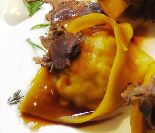 La famiglia di Alfonso Iaccarino dedica a Shakespeare i Tortelli di Germano reale alle spezie d’Oriente, fonduta di pecorino e tartufo nero |