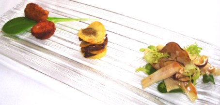Anche la ricciola cruda affumicata alla cannella accompagnata da cubetti di arancia tarocco e patate viola con le quali fare scarpetta nello yogurt con erba cipollina è un trionfo di leggerezza e un invitante richiamo, insieme alle note muschiate e minerali del Vermentino, al contatto con il mare e con i suoi frutti. Ed è un mare di colori e sapori il Mediterraneo piatto dedicato dalla famiglia Alfonso, Livia ed Ernesto Iaccarino ad Assaggi di Teatro. Abbinato a un vino bianco che con il colore giallo ambrato intenso e il superbo bouquet di miele, nocciola e stuzzicante croccantino rende ancor più vivaci al palato i canditi e il pistacchio del dolce Mediterraneo. Una variazione di porcini rivela le tante sfumature dei sapidi funghi che, come attori consumati, sanno offrire volti e sapori sempre diversi: crudi, conditi con citronette e olio, in millefoglie, alternati a strati di patate sottili e croccanti o ancora fritti, deposti su una virgola di salsa al prezzemolo e adatti al corpo leggero ma di buona persistenza del vino. Sotto la cloche d'argento fa il suo ingresso la Pasta. I ravioli di acqua e farina con caciotta fresca e strepitosi pomodorini vesuviani sono un piatto tutto rotondo, morbido, vellutato, mentre gli ormai celebri Paccheri di Gragnano con Cacio, pepe e Scorfano [ricetta] offrono sapori più vigorosi. Si torna alla delicatezza di sapori con il dentice scottato in padella e finito di cuocere sotto vuoto, che insieme alle scorzette di limone candito, le crocchette di zucca e i friggitelli (cime di rapa) compone sul piatto un'esile figura come di pellegrino dalle vesti colorate in viaggio verso Compostela. Sembra di essere a teatro! E il sipario si apre su un vino da uve Chardonnay e Malvasia che con le morbide note floreali e i sentori di mandorla e noci accarezza il palato e si specchia nei profumi del piccolo dessert di latte di mandorla e liquirizia in una esaltazione ricambiata. Corallina: «Sì, caro Frangiotto, governatevi bene; nutritevi bene; se avete ad esser mio, vi voglio bello, grasso e robusto» Frangiotto: «Tocca a voi pensarci» Corallina: «A me tocca?» Frangiotto: «Sì, a voi. Se ho da essere cosa vostra, tocca a voi ingrassarmi» Carlo Goldoni E mentre i ricordi del dolce di arancia e ricotta si stemperano nel caffè e nelle piccole golosità friabili, l'occhio cade su un'installazione video del ristorante e su un fotogramma di ombre cinesi che sfuma nel volo di un uccello, a ricordare che è ancora e sempre il teatro a giocare col cibo e... ad assaggiarlo. Maria Luisa Basile [gallery=22] |