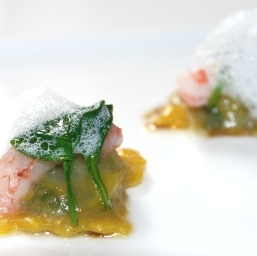 Vanno, vengono, certe volte sono bianche, per Fabrizio de Andrè o verdi, per Anthony Genovese e Marion Lichtle che, lasciandosi instillare l'idea dall'opera di Aristofane, dedicano ad Assaggi di Teatro i saporosi raviolini. Sono gonfi di una farcia che come le nuvole muta a piacere delle stagioni, li incorona una spuma di pepe verde e menta e fluttuano su un cielo di porcellana bianca. O eterei o morbidi. (MLB) |