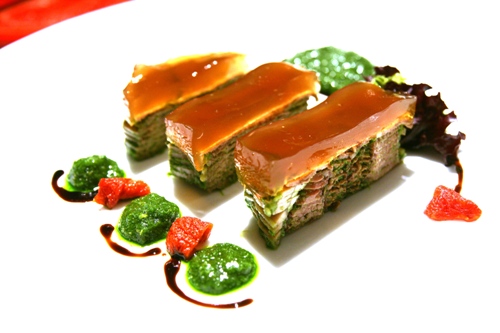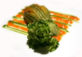Ne sono gustosi esempi il Tonno di coniglio grigio di Carmagnola servito con giardiniera di verdure agrodolci o l’Insalata russa in versione “domenicale”, con zoccolo morbido di tonno. Assai simpatiche le presentazioni dei piatti: nel primo caso un cilindro di verdure dal quale pare uscire il coniglio insieme alla sua vegetariana dieta e nell’altro una torre costruita con cubetti di verdure legate dalla maionese e con tanto di pennacchio sventolante di carote.