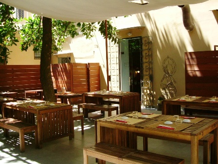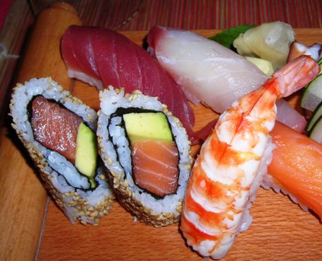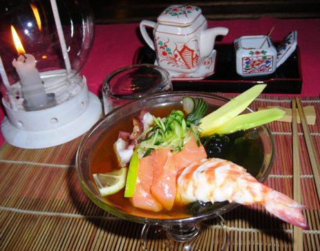 Particolarmente felice è poi l’idea del Doozo di offrire un raccolto giardino d’inverno, dove si mangia non solo nella bella stagione. Afferrare con le bacchette le porzioni di sushi e sashimi bevendo tè verde immersi nella quiete creata dagli alti alberi mezzo nascosti dalla tenda e con lo zampillio di una piccola fontana come sottofondo, sono gesti che paiono trasportare in Oriente. Nella cucina giapponese la coerenza fra tecniche culinarie e dispositivo scenografico ha proprio origine nel modo di intendere la natura, di rispettarla e accudirla. La venerazione della freschezza e della stagionalità dei prodotti e la scelta dell’ingrediente crudo, esprimono il significato simbolico di un accostamento privilegiato alla natura. Ecco perchè la cucina rifugge la trasofrmazione dei cibi, l’artificio, le decorazioni bizzarre, rifiutate come mistificazioni che corrompono il sapore naturale degli alimenti.