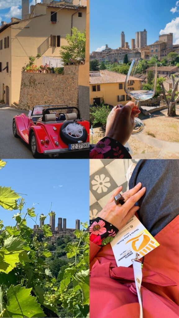 Il borgo di San Gimignano, con il suo profilo medievale punteggiato in verticale dalle caratteristiche torri, si inserisce in maniera armoniosa in un verde paesaggio collinare nel quale da secoli si alternano e compenetrano boschi, distese coltivate, cascine, ulivi e viti.