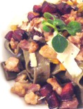 Impastare gli ingredienti, far riposare circa 30 minuti, tirare la sfoglia e tagliare le pappardelle.