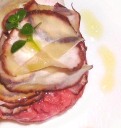 | Se si percorre velocemente la strada che attraversa il paese, si rischia di non riconoscere l'ingresso di un luogo dedicato alla memoria del gusto, dove, fra sale di rustica eleganza, la cultura gastronomica piemontese è interpretata con sensibilità, leggerezza e modernità. Il menu affonda le radici nella cucina contadina nata dall’ingegnosità popolare e dalla sua abilità nel trasformare in ricchezza la povertà degli ingredienti disponibili nelle campagne. Un’eredità culturale che la famiglia Vivalda si tramanda dalla seconda metà dell’800 e che oggi, ulteriormente affinata, si arricchisce di piatti meno legati alla tradizione ma ugualmente emozionanti, come la magistrale scaloppa di foie gras con delicatissimo pan brioche. Sempre presenti in carta alcuni antipasti divenuti ormai dei classici, dalle lumache alla trippa con porri di Cervere al batsoà (piedini di maiale cotti nell'aceto, impanati e fritti). Per chi non l’avesse mai assaggiata, e come alternativa ai ravioli gobbi serviti sul tovagliolo, l’occasione di provare la finanziera è ghiotta, tanto più che se si arricchisce di funghi porcini fritti. Qualità e perfetta tecnica di cottura caratterizzano le carni, dal capretto di Roccaverano al cappello da prete cotto nel Barolo per dieci ore. Nel menu non mancano i piatti di pesce, sia d’acqua dolce, come la deliziosa anguilla con verdure in agrodolce, sia di mare, interpretati nella tartara incoronata da gamberi di Sanremo. Lista dei dolci separata con invitanti proposte che culminano in aspic di frutta di stagione o babà al rum delle Antille. La Carta dei vini con i quali accompagnare le prelibatezze è all'altezza della cucina. |