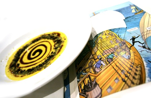 | Performance Assaggi di Teatro: Amleto di Shakespeare e la Crema di mais, polvere di caffè, capperi e olive (Disegno “Amleto a fumetti" di Gianni De Luca) > |