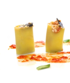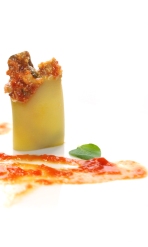 <...La fortuna va guidando le cose nostre meglio che noi non oseremmo desiderare. Vedi là, amico Sancio, come si vengono manifestando trenta, o poco più smisurati giganti? Io penso di azzuffarmi con essi...>. L'esito della zuffa dell'hidalgo Don Chisciotte con i mulini a vento scambiati per giganti è noto. Ed è con la più grande simpatia per il cavaliere errante pazzo per i libri (e che per acquistarli si prosciuga finanziariamente e può consumare solo pasti frugali e poveri, a base di frattaglie e legumi) ripreso da Shakespeare nella sua commedia ritrovata che Assaggi di Teatro e lo chef Pierluigi Consonni erigono un totem-timballo del gusto. In un trompe l'oeil al contrario, nella fantasia del gourmet questi paccheri ripieni di parmigiana sembrano mulini a vento. Sospesi tra illusione e realtà, da afferrare "al dente" se, come scrive Cervantes, "tutte le gioie di questa vita passano come ombra e sogno..." (Quijote, II, 22). (MLB) |