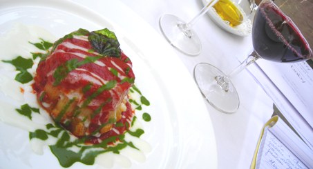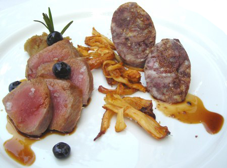 Si resta nell’area mitologica della caccia al cinghiale calidonio da parte degli Argonauti che  avrebbero certo apprezzato il roseo lombo dell’irsuto quadrupede servito con fondo di mirtilli e salsiccia punteggiata invece che dal grasso da gocce di mozzarella di bufala. E poi ancora funghi finferli e una purea di castagne che le note mentolate del vino rosso, “per nulla austero, di fresca beva e ben amalgamato nel tenore alcolico” - commenta il Sommelier Alessandro Porreca - trasformano in carezze al palato.