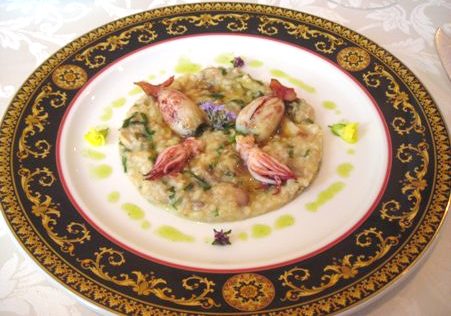 Foto grande: Calamari ripieni al prebboggion su crema di farro e verdure - ristorante Paolo e Barbara - Sanremo - Liguria