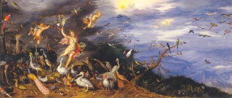 È un'apoteosi di nature morte quella a cui Bruehgel ci fa assistere, uno spettacolo di cose al servizio dei cinque Sensi nel quale l'uomo quasi scompare. A Brueghel le figure umane interessano talmente poco che affida ad altri pittori la loro esecuzione, per non essere distolto dall'universo di oggetti in cui ama rifugiarsi.