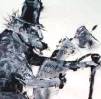 | "Ammucchiati sul pavimento, in modo da formare una specie di trono, erano tacchini, oche, selvaggina, pollame, cosciotti muscolosi, grandi pezzi di carne, porcellini da latte, lunghe collane di salsicce, pasticci di carne | pudding, barilotti di ostriche, castagne arrosto roventi, mele dalle guance di ciliegie, arance succose, pere succulente, torte smisurate e ciotole fumanti di punch, che annebbiavano la stanza con il loro vapore delizioso." |