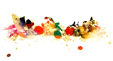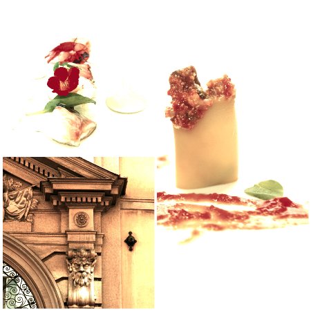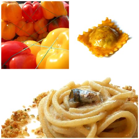 | * I piatti rappresentano creazioni dedicate ad Assaggi di Teatro Torino dagli chef (dall'alto): Stefano Gallo (Baccalà mantecato), Claudio e Anna Vicina (Scamone di vitello e salsa di Barolo), Marcello Trentini (Spaghetti pane burro e acciughe), Christian Milone (Insalata 2012), Mariangela Susigan (Crudi di pesce e germogli), Pierluigi Consonni (Paccheri alla parmigiana © Vintage 1997) |