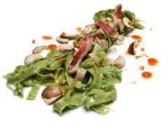 Sono saporite come il dialetto romanesco le Tagliatelle verdi con ragù di triglie, funghi porcini e olio di pomodori confit dello chef Angelo Troiani (ristorante Il Convivio Troiani) che nel piatto unisce terra e mare. Italico ...ricetta |