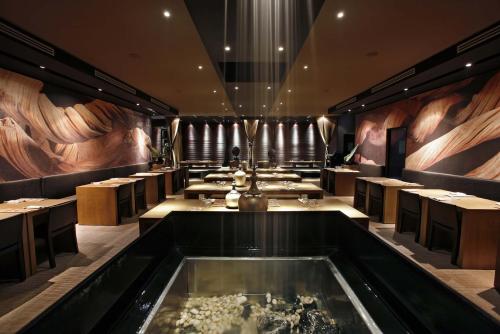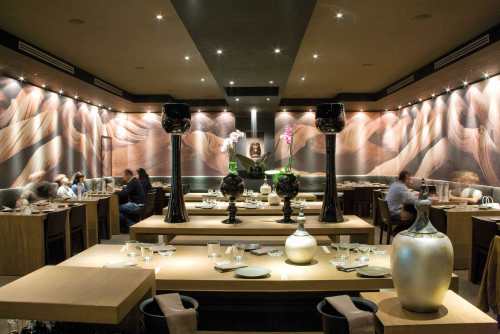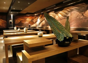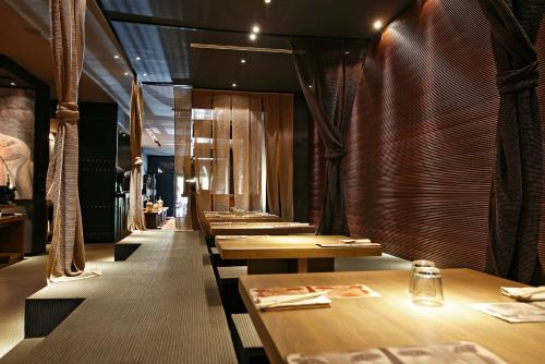Arrivate presto, quando il salone non è ancora gremito da una variegata moltitudine dal brusio poco Zen, e godetevi gli zampilli dell’acqua perenne della fontana, gli spazi ariosi da rivista di architettura progettati dall’architetto spagnolo Elena Piulats, le fotografie giganti che con un sapiente gioco di luci disegnano labirinti sulle pareti, le teste dorate di Budda, imperturbabili icone di spiritualità. Oppure godetevi l’intimità regalata dai Tatami o ancora scegliete la più raccolta sala d’ingresso, dove sorseggiare un aperitivo prima di iniziare la cena.
