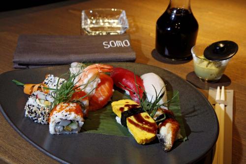 Somo Asia è un incontro tra design contemporaneo, esaltato da materiali naturali, arredi e apparecchiature essenziali, cucina giapponese e cucina fusion – mediterranea, proposte in menu separati ma con reciproco scambio di sapori e titillamenti del palato.