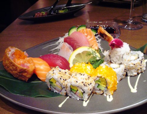 I neofiti o i fusion gourmet di lungo corso possono iniziare l’esperienza esotica con il capitolo dei sashimi, da scegliere in base a gusto e curiosità: Hamaki (ricciola), Suzuki (spigola), Hirame (rombo), Tai (dentice), Sake (salmone), Maguro (tonno), Ikura (uova di salmone) da alternare ai Nighiri sushi nei quali i maestri sushi fanno a gara nel disporre in modo artistico i filetti di pesce crudo sul letto di riso. Il consiglio è di iniziare con i sapori più tenui del pesce bianco al quale far seguire il sapore più intenso del pesce con carne rossa e delle guarnizioni più saporite offerte anche dalla fantasiosa scelta di Maki, dai più semplici composti dall’alga nori che avvolge riso e pesce, ai Raimbow con frittata e avocado, ai Futomaki (anche vegetariani), senza perdere gli Hosomaki con anguilla grigliata (Unagi) o granchio (Kani) e i croccanti Ebi Ten con gamberi fritti.