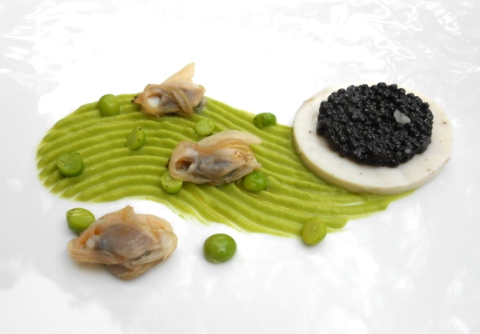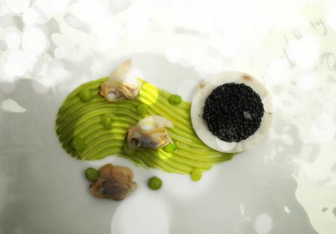 Caviale, storione e tartufi di mare con crema di piselli - Oliver Glowig